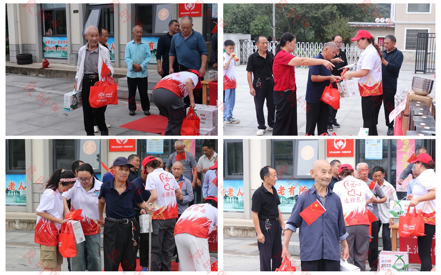 下午,团队转赴晓天养老院,为老人们送上定制不锈钢碗、保温壶及中秋月饼、牛奶水果等物资。志愿者们细致地将物资送入行动不便老人的房间,老人们以颤抖的手掌轻触志愿者,眼神中满是无声的谢意。养老院内,老人们传递着月饼,笑声在闷热的空气里轻轻回荡,为这座山间养老院注入了融融暖意。